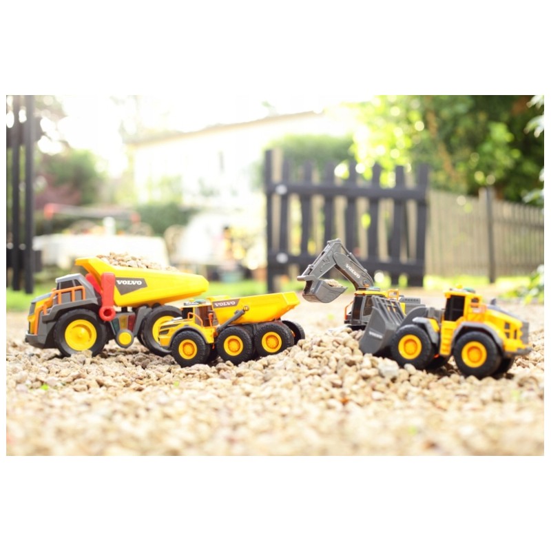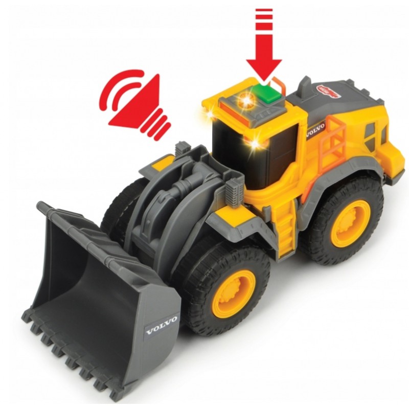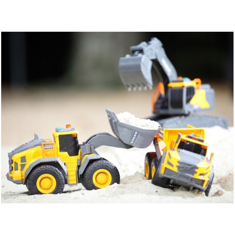 Dickie Construction to pojazdy budowlane: zabawki z siłą! Miasteczko rozbudowuje się w imponującym tempie, a do pomocy niewątpliwie przydadzą się odpowiednie pojazdy - koparka, spychacz lub wywrotka (sprzedawane oddzielnie). We współpracy z oryginalnym producentem maszyn budowlanych - Volvo - powstała wyjątkowa seria składająca się z replik pojazdów. Spychacz jest wspaniałą propozycją dla małych wielbicieli pojazdów budowlanych. Pora rozpocząć budowę!