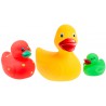 Trzy kolorowe kaczuszki doskonałe do zabawy w wodzie. Twój sprytny maluch może nabierać i wypuszczać z nich wodę, a nawet ochlapać mamę i tatę. Nasze gumowe kaczuszki to piękne, ponadczasowe zabawki, które dzieci kochają od pokoleń.