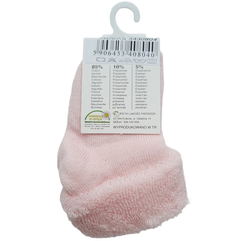 UWAGA! Skarpetki dostępne są w 4 wariantach kolorystycznych (ecru, niebieski, różowy i biały). Informację o wyborze koloru należy umieścić w wiadomości do sprzedającego.