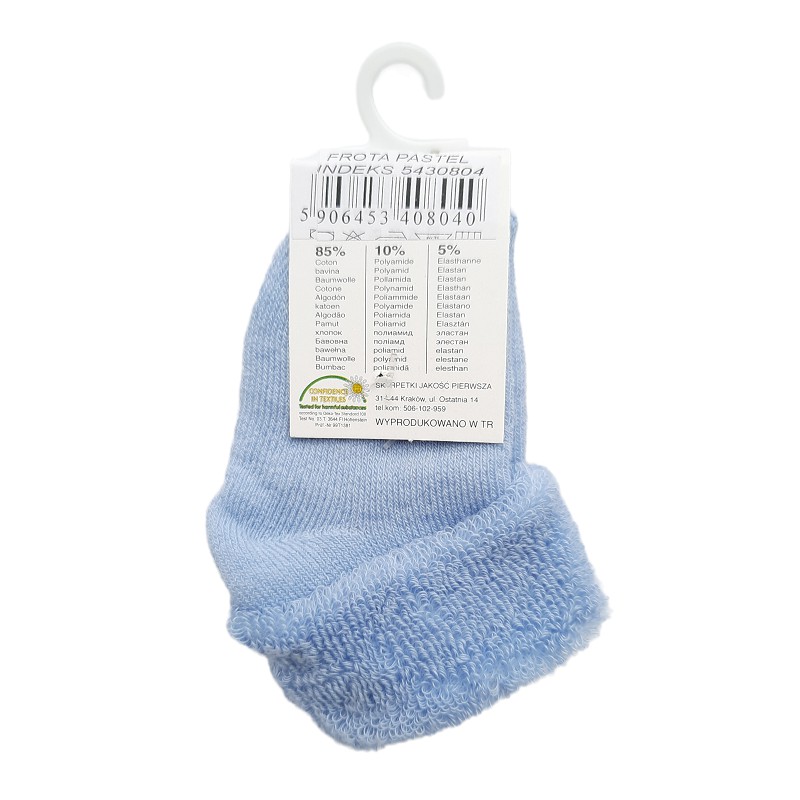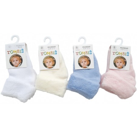 Skarpetki Tombiś wykonane z wysokiej jakości frotte, wywijane, jednokolorowe, bezuciskowe- idealne skarpetki dla noworodka.