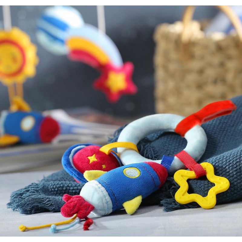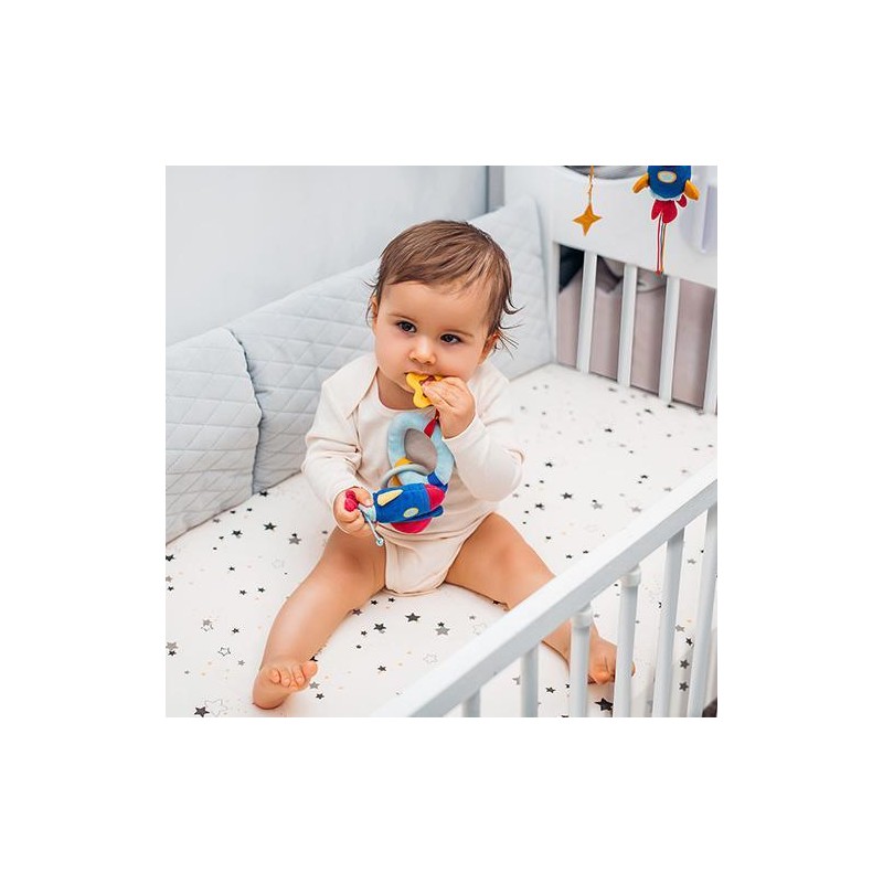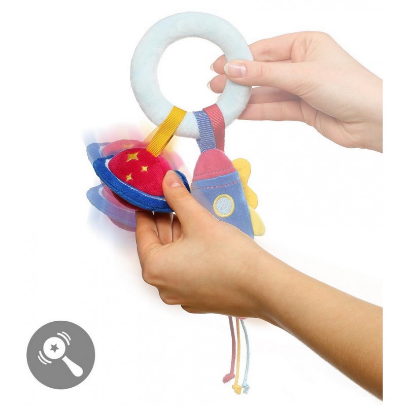 Zawieszka do wózka COSMOS to zabawka wspomagająca rozwój manualny dziecka. Jej elementy może łatwo przekładać z rączki do rączki, ćwicząc chwyt dłoni. Zabawkę z łatwością można przymocować na foteliku samochodowym, czy wózku, umilając maluchowi każdą podróż.