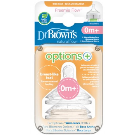 Smoczek do butelki Options + Szeroka Szyjka Dr Brown′s PREEMIE Flow dla Wcześniaków, zapewnia spójny, naturalny, przepływ. Kształtem przypomina pierś mamy. Wykonany z najwyższej jakości super miękkiego silikonu. W połączeniu z systemem antykolkowym powoduje bezciśnieniowe karmienie, które zmniejsza występowanie kolek, odbijania oraz gazów.