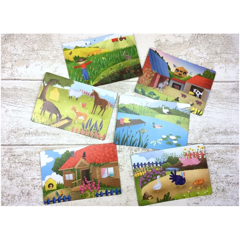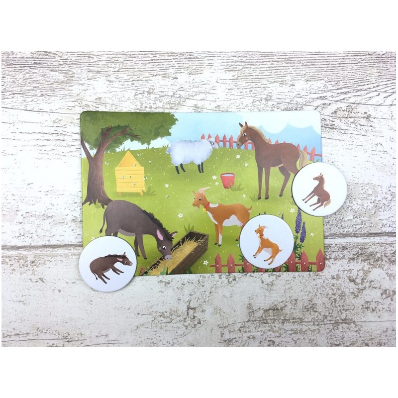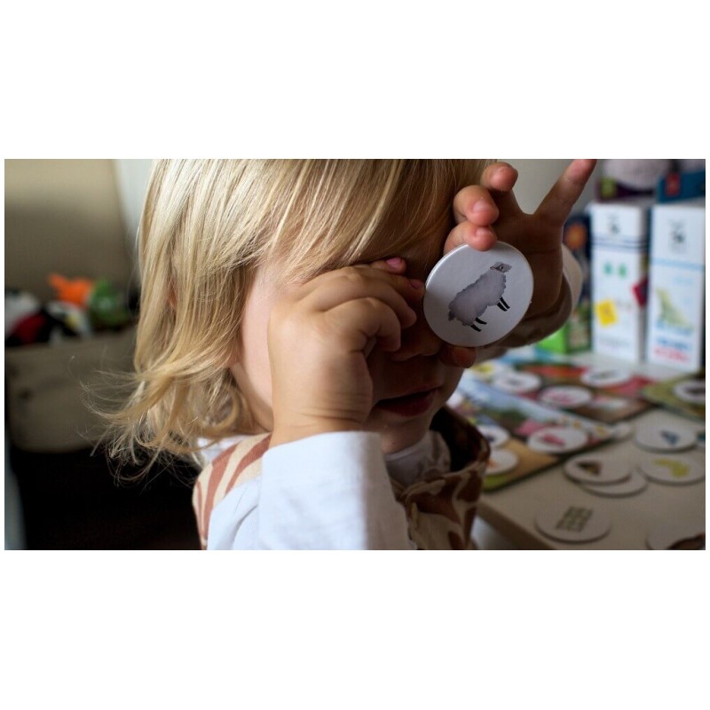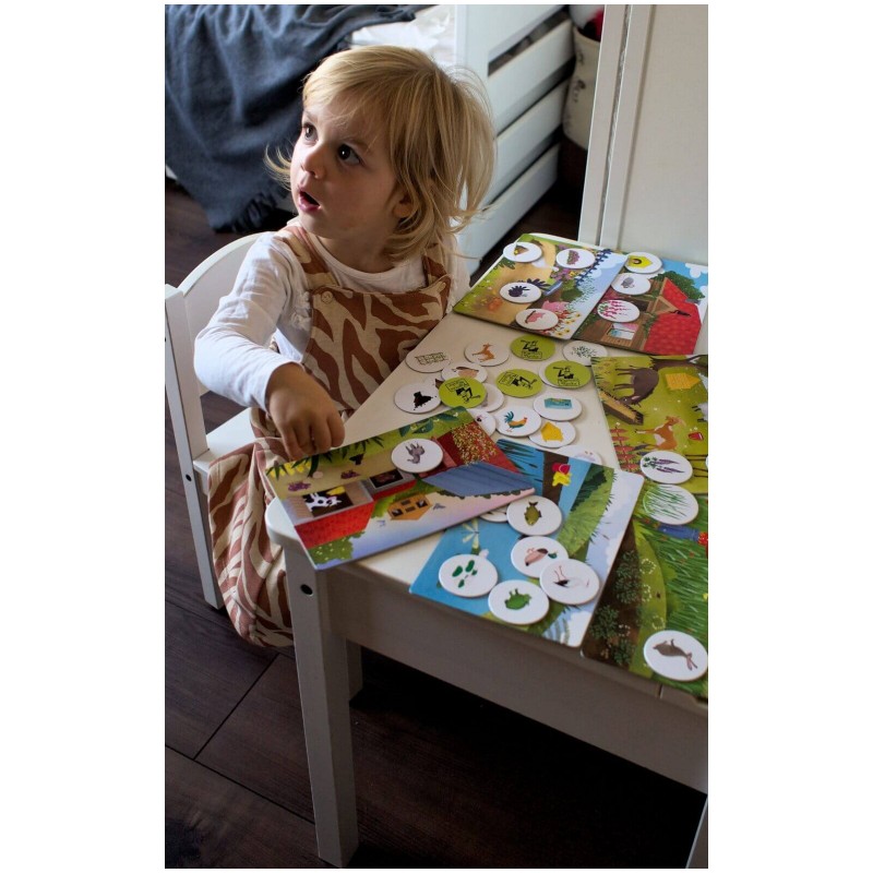 Cztery warianty rozgrywki ułatwią dopasowanie gry do wieku i umiejętności dzieci. W zestawie znajduje się 36 żetonów i 6 plansz z kolorowymi ilustracjami.