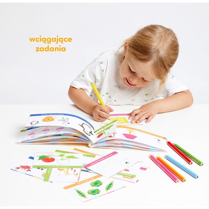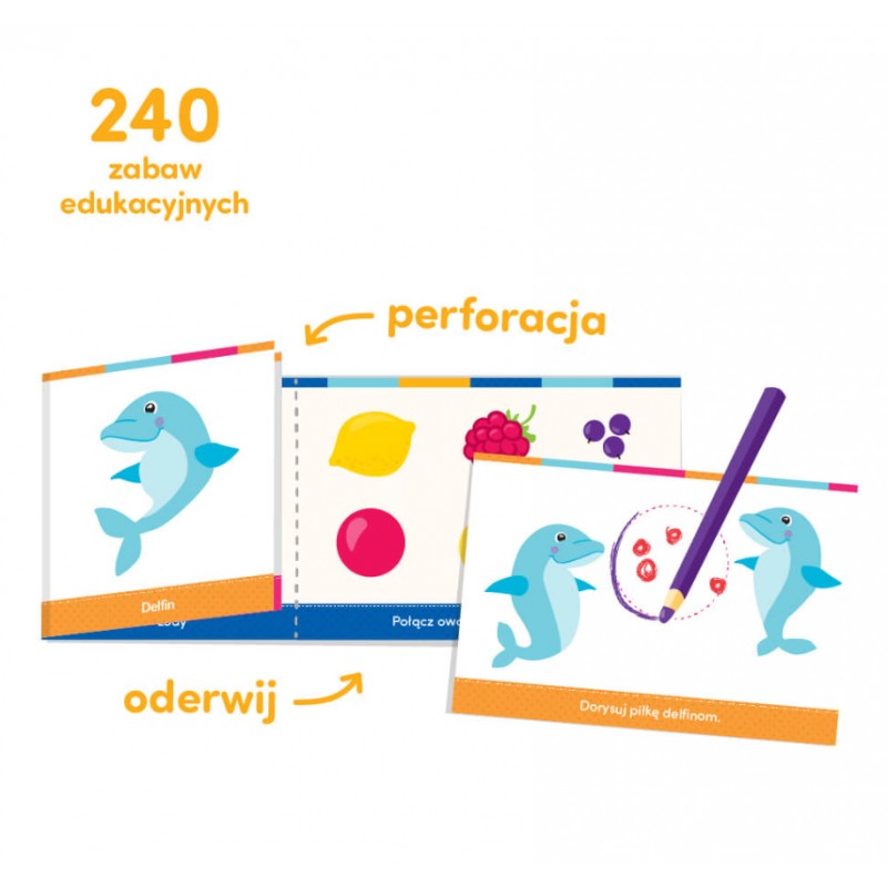 Poręczna edukacyjna książeczka dla dzieci w wieku od 2 lat zawiera 240 wciągających, edukacyjnych zabaw. Każda strona składa się z części z informacją, zagadką lub zadaniem oraz części do gryzmolenia. Dzięki perforacji możecie oderwać fragment do rysowania i cieszyć się poręczną książeczką z ciekawostkami.