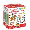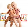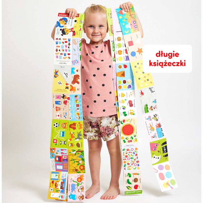 Edukacyjny zestaw został przygotowany z myślą o czytelnikach w wieku przedszkolnym. Pozwala zacząć i kontynuować naukę języka w sposób dostosowany do wieku i zainteresowań dzieci. Piękne, pełne humoru ilustracje zachęcają do poznawania angielskich słówek i wyrażeń i wspólnej lektury. Różnorodne arcyciekawe zadania angażują słuch, wzrok, mowę i dotyk: paluszkowe zabawy są lubiane przez dzieci, wywołują mnóstwo uśmiechów i znacząco wpływają na zapamiętywanie nowego materiału. Do zestawu dołączyliśmy poradnik z wyjaśnieniem metody oraz pomysłami na edukacyjne zabawy, które wesprą was w tej fantastycznej przygodzie.