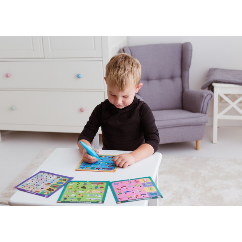 Kieszonkowy długopis z zestawem 15 dwustronnych kart z pytaniami umili czas podczas podróży lub w domowym zaciszu. Pytania podzielone zostały na kategorie tematyczne, a każdej z nich odpowiada inna ikonka. W rogu karty znajduje się symbol kategorii, informujący z jakiego typu pytaniem mamy do czynienia. Podczas wskazywania odpowiedzi, interaktywny długopis poinformuję Cię czy jest ona prawidłowa, czy błędna, sygnalizując to lampką LED oraz komunikatem słownym.