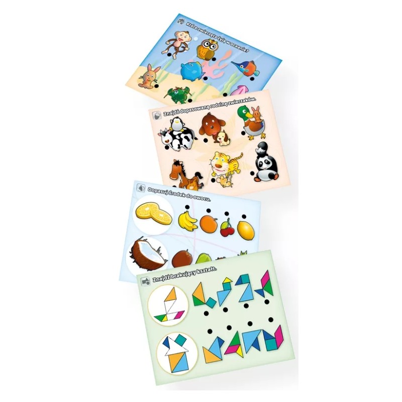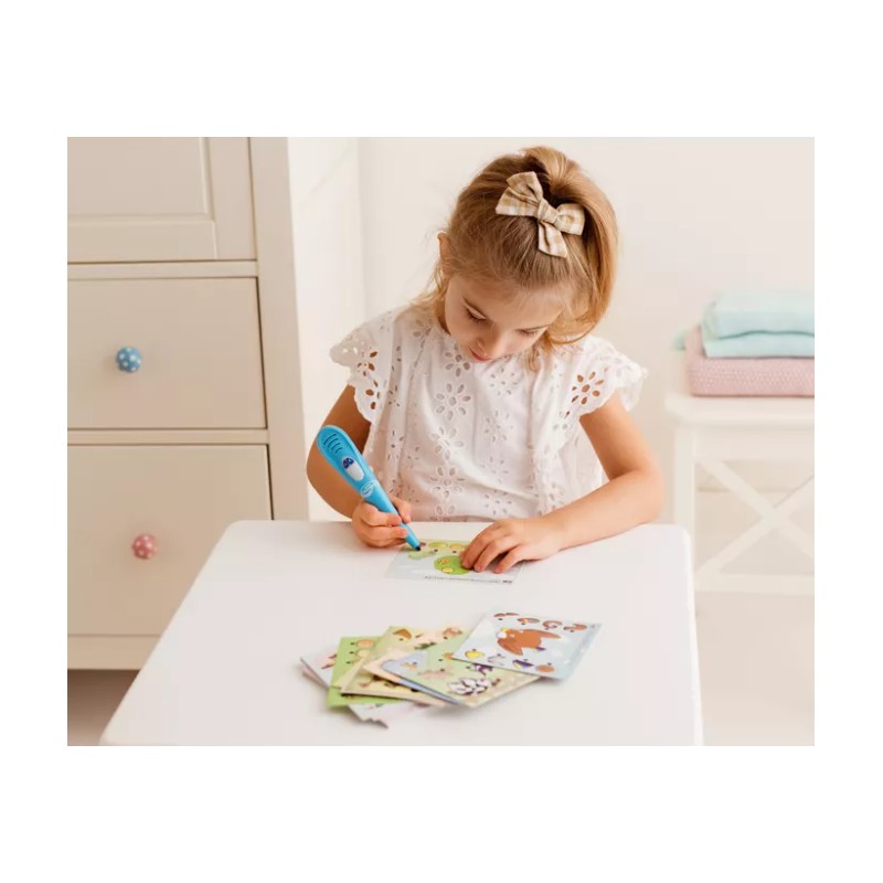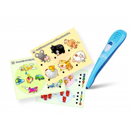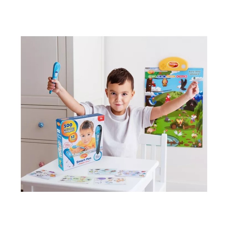 Sprytny, mówiący długopis zabierze Cię w ekscytującą podróż do świata nauki! W zestawie znajdziesz aż 50 dwustronnych kart, zawierających pytania z 13 różnych kategorii. Aby udzielić odpowiedzi wystarczy przycisnąć dotykową końcówką długopisu czarną kropkę przy wybranej przez siebie odpowiedzi. Smart Pen poinformuje czy udzielona przez Ciebie odpowiedź jest prawidłowa, czy błędna. Możesz dostosować sposób sygnalizowania odpowiedzi do własnych upodobań (światło, dźwięk lub głos). Długopis posiada regulację głośności, więc możesz się nim bawić, gdzie tylko zechcesz.