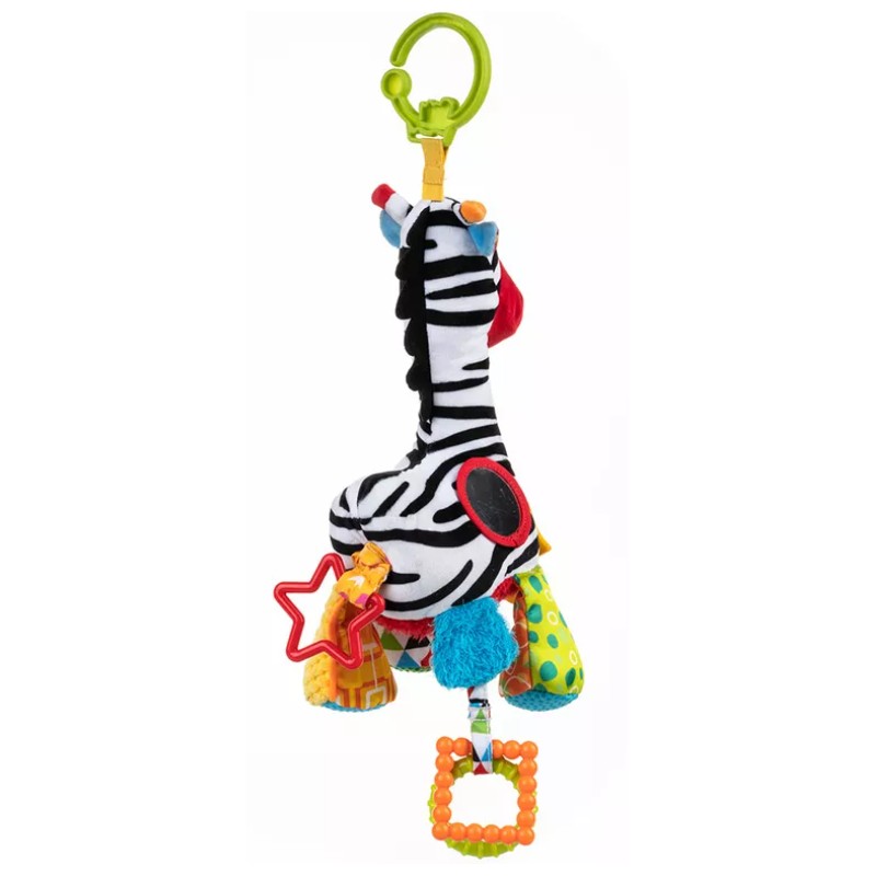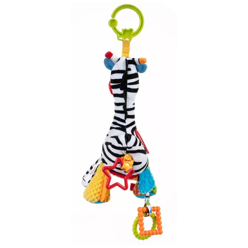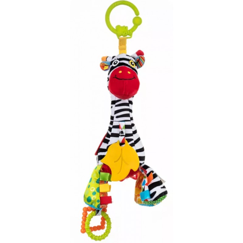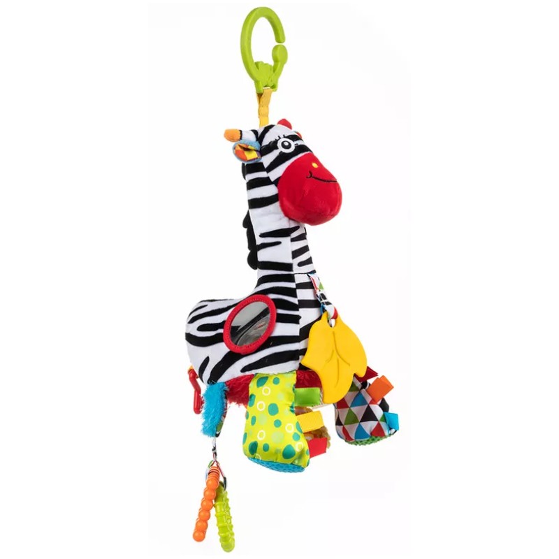 Zoya to muzykalna zeberka, która zapewnia maluchom relaks, grając im do snu przyjemną dla ucha melodię. Zebra posiada dwie grzechoczące łapki, bezpieczne lusterko do samopoznania bobasa, materiałowe metki o zróżnicowanej fakturze oraz kolorowe gryzaczki, które przyniosą ulgę obolałym dziąsełkom ząbkującego dziecka. Aby posłuchać kołysanki wystarczy pociągnąć za gwiazdkę znajdującą się przy jej ogonku. Praktyczna klamra pozwoli przymocować zebrę w wybranym miejscu.