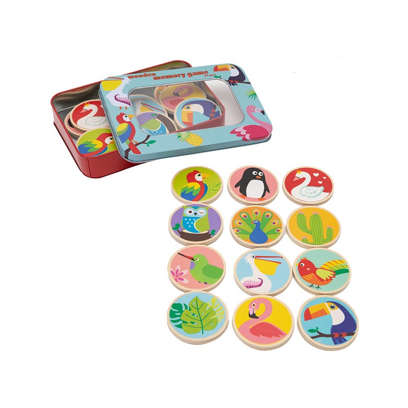 MEMORY to 24 elementowa gra pamięciowa, polegająca na odnajdywaniu i połączeniu w pary drewnianych obrazków. Jest to doskonała zabawa wspomagająca pamięć, koncentrację oraz logiczne myślenie. Poprawia zdolności manualne zapewniając przy tym mnóstwo zabawy.