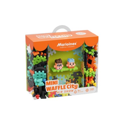 Zestaw Air Show składa się ze 148 elementów i dwóch nowych postaci, które zadbają o to, by pokaz lotniczy przebiegł bezpiecznie i sprawił wiele wrażeń widzom. Połącz zestaw z innymi z serii Waffle City i ożyw swoje miasteczko powiększając je o prawdziwy pas lotniska. Złóż zestaw według instrukcji lub uruchom wyobraźnię i skonstruuj własną, unikalną wersję! Zestaw Air Show łączy naukę logicznego myślenia przestrzennego z niepowtarzalną zabawą. Przy pomocy wyobraźni i zestawu Air Show można naprawdę odlecieć!