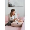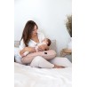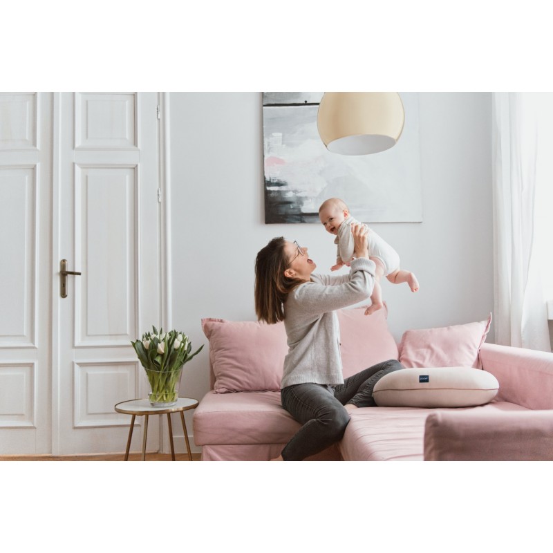 Środkowa część poduszki została lekko pogrubiona i powiększona, dzięki czemu dziecko jest zawsze ułożone na właściwej wysokości – tuż przy piersi mamy. Taka budowa umożliwi mamie przyjęcie wygodnej, wyprostowanej, odciążającej kręgosłup pozycji podczas karmienia piersią, równocześnie zapewniając dziecku stabilne i bezpieczne oparcie.