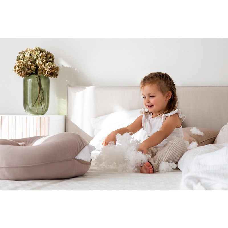 Wysokość ta może być modyfikowana i dostosowana do indywidualnych potrzeb. Przesuwając wypełnienie można uzyskać dowolną oczekiwaną wysokość poduszki - nawet wtedy kiedy karmisz tylko jedną piersią lub jeśli wolisz, aby dziecko było ułożone pod innym kątem.