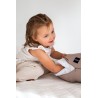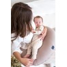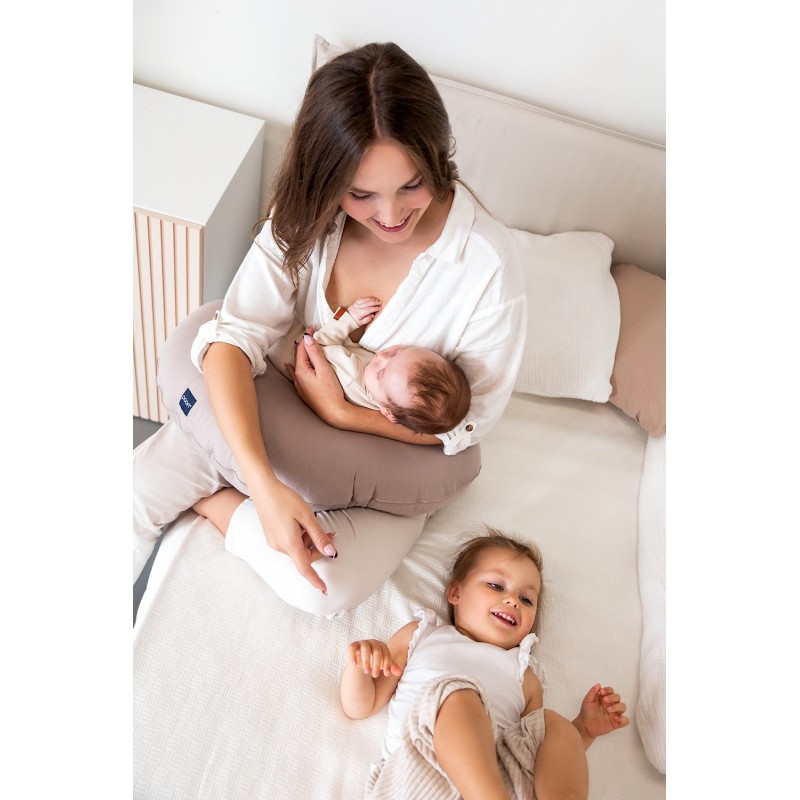 Środkowa część poduszki została lekko pogrubiona i powiększona, dzięki czemu dziecko jest zawsze ułożone na właściwej wysokości – tuż przy piersi mamy. Taka budowa umożliwi mamie przyjęcie wygodnej, wyprostowanej, odciążającej kręgosłup pozycji podczas karmienia piersią, równocześnie zapewniając dziecku stabilne i bezpieczne oparcie.