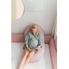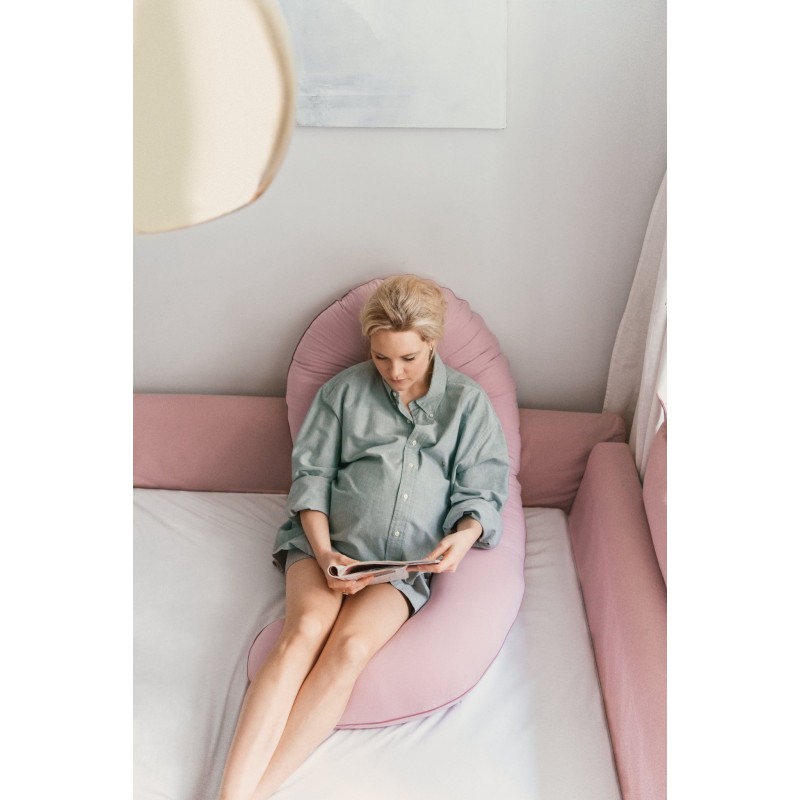Dzięki formie cyfry 9 poduszka stanowi podparcie na całej linii ciała – od głowy i łopatek, przez brzuch aż do bioder i nóg