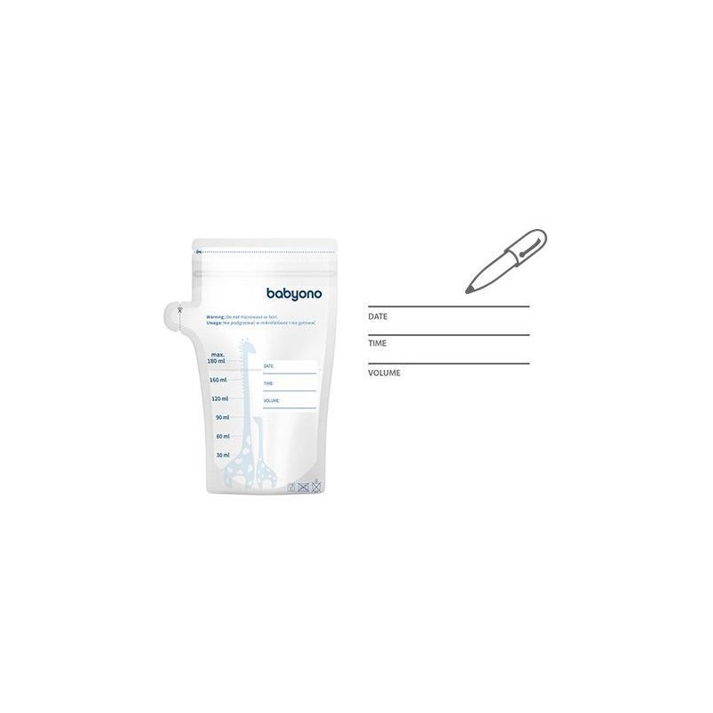 - MIEJSCE NA NOTATKI. Na woreczku znajdziesz specjalne miejsce na ważne notatki, takie jak: data, godzina i ilość odciągniętego pokarmu.