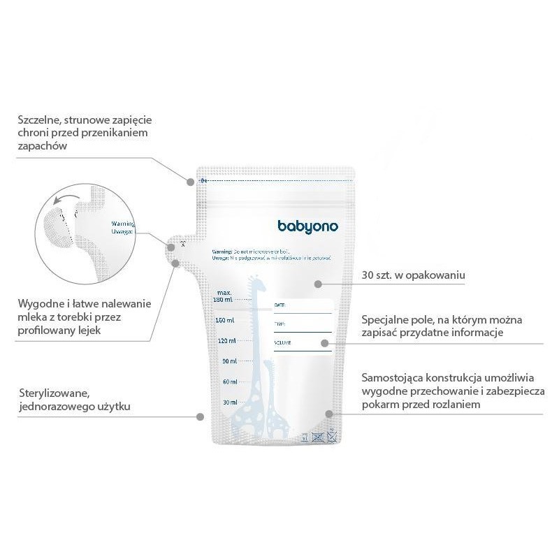 BABYONO Woreczki do przechowywania pokarmu 180ml 30szt