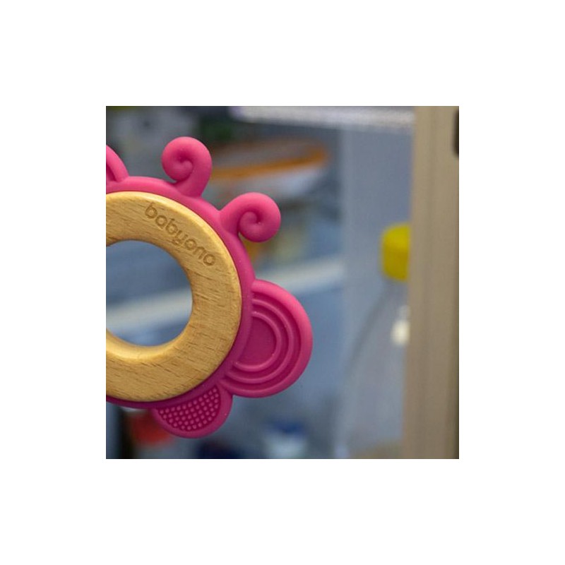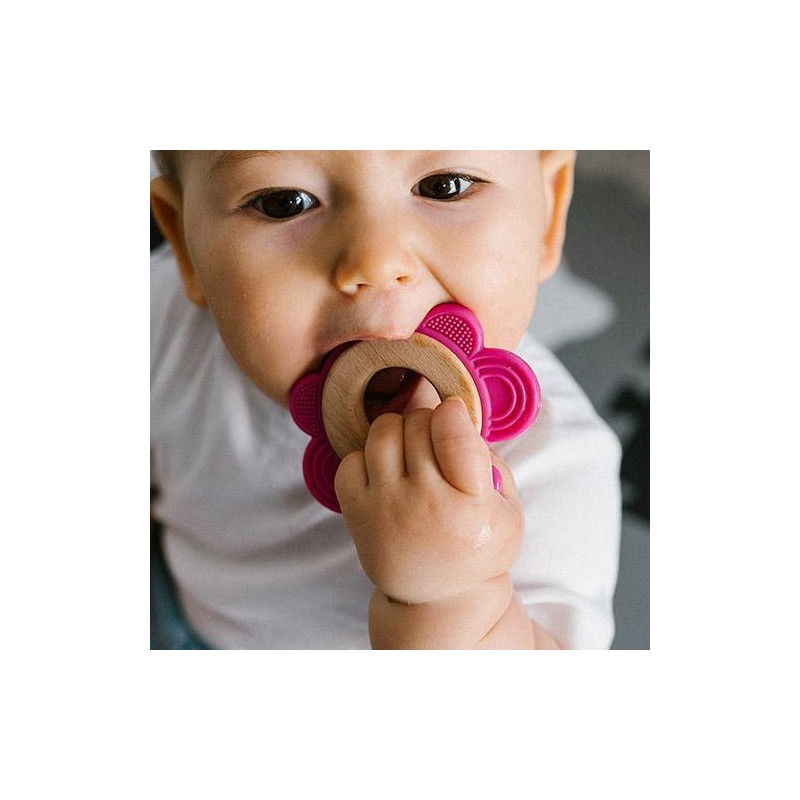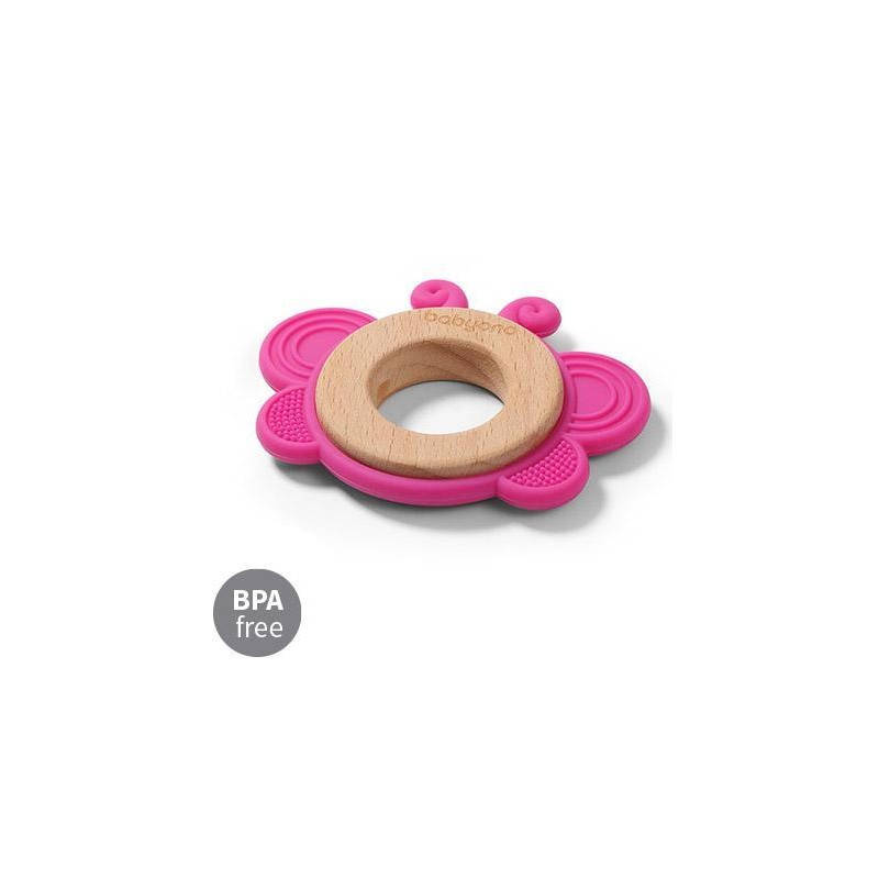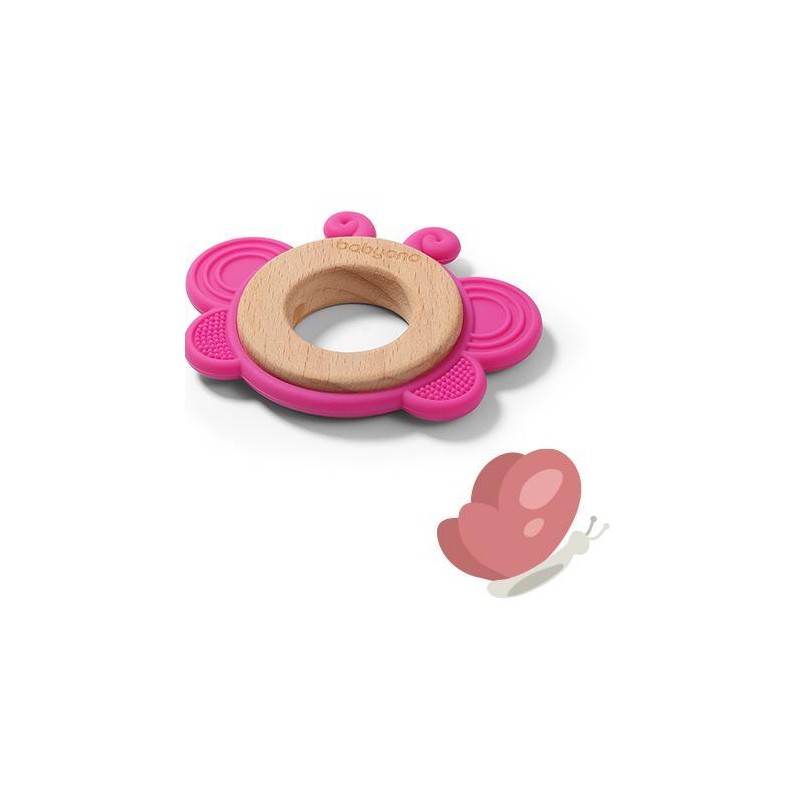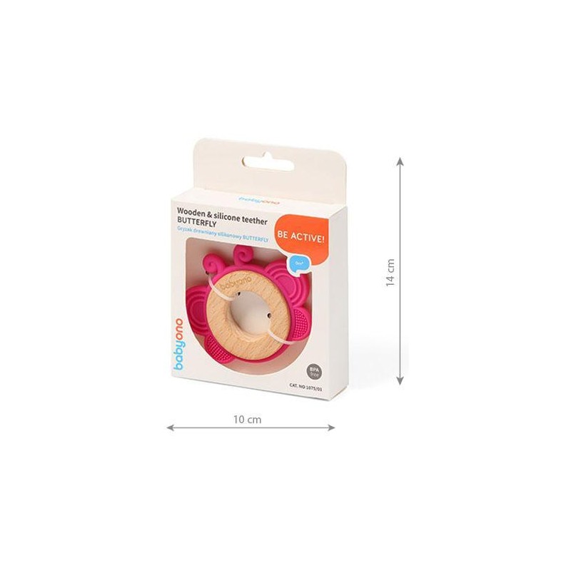 Gryzak BUTTERFLY Babyono wykonany z bezpiecznego silikonu i drewna bukowego z wypustkami zapewni maluszkowi zróżnicowane wrażenia sensoryczne. Lekki, poręczny, łatwy do trzymania w dziecięcych rączkach.