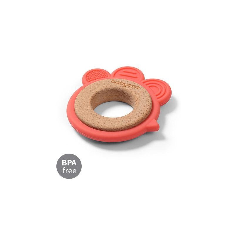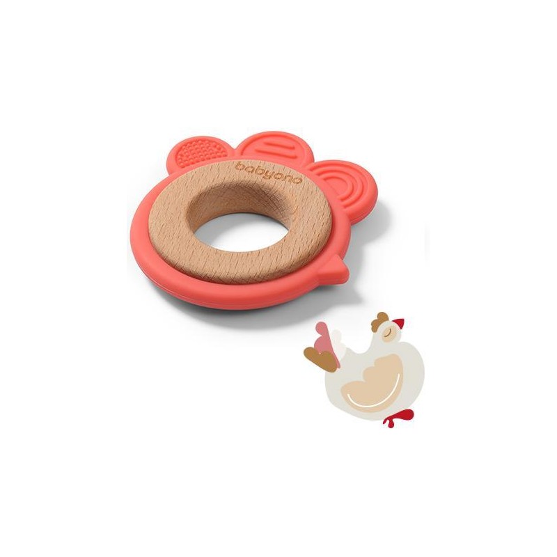 Babyono Gryzak drewniany silikonowy KURKA 0m+