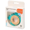 Gryzak drewniano-silikonowy w kształcie kraba, nie tylko spełnia swoją podstawową funkcję, jaką jest złagodzenie ząbkowania, ale też daje zróżnicowane wrażenia sensoryczne dzięki połączeniu bezpiecznego silikonu z drewnem bukowym. Liczne elementy tworzące powierzchnię gryzaka wprowadzają dodatkowe korzyści dla dziecka. Wypustki stymulują sensorycznie, pomagają w chwytaniu, umożliwiają też nakładanie na dziąsła i rozprowadzanie po nich łagodzącego żelu do ząbkowania.