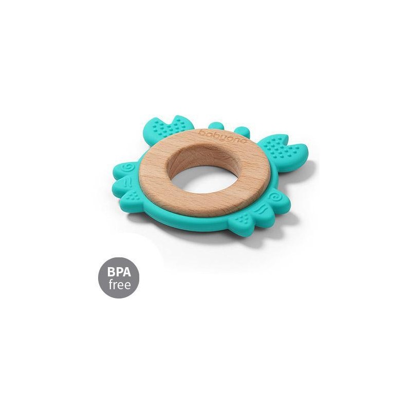 Gryzak KRAB Babyono wykonany z bezpiecznego silikonu i drewna bukowego z wypustkami zapewni maluszkowi zróżnicowane wrażenia sensoryczne. Lekki, poręczny, łatwy do trzymania w dziecięcych rączkach.