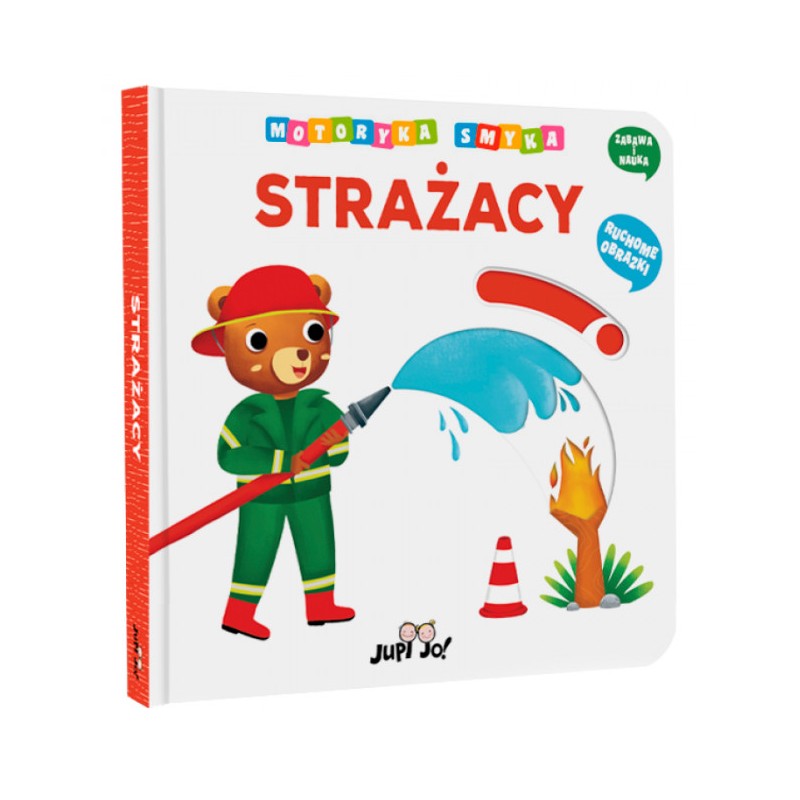 Książeczka STRAŻACY z serii Motoryka Smyka zaprasza do zabawy i nauki, dzięki okładce z dzielnym strażakiem gaszącym pożar, barwnym ilustracjom wzbogaconym o ruchome elementy, jak również wielu nowym słowom. Książeczka nie tylko wzbudzi zainteresowanie dziecka, zachęci także do aktywności, która ma ogromny wpływ na rozwój motoryki i sprawności manualnej.
