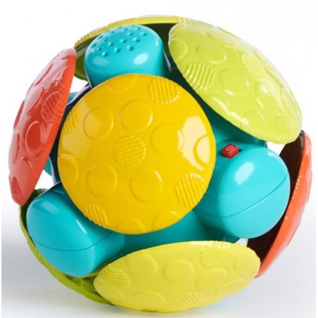 nteraktywna piłka Wobble Bobble 3 m+ posiada bogate kolory i kształty, które dają więcej radości z zabawy. Ta zabawka zachwyci Twoje dziecko i wywoła uśmiech na jego twarzy. Wystarczy potrząsnąć, aby ta piłka przetoczyła się po całym domu w różnych kierunkach. Kiedy piłka się toczy, każde jej zawrócenie spowoduje, że dziecko zacznie chichotać.
