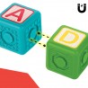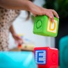 • Zestaw zawiera 5 kolorowych klocków z literkami, 2 dachy, komin, most i 6 akcesoriów sensorycznych, na których pojawiają się popularne postacie z filmów i książek Baby Einstein, np. przesuwane okienka, grzechotki i różne kształty.