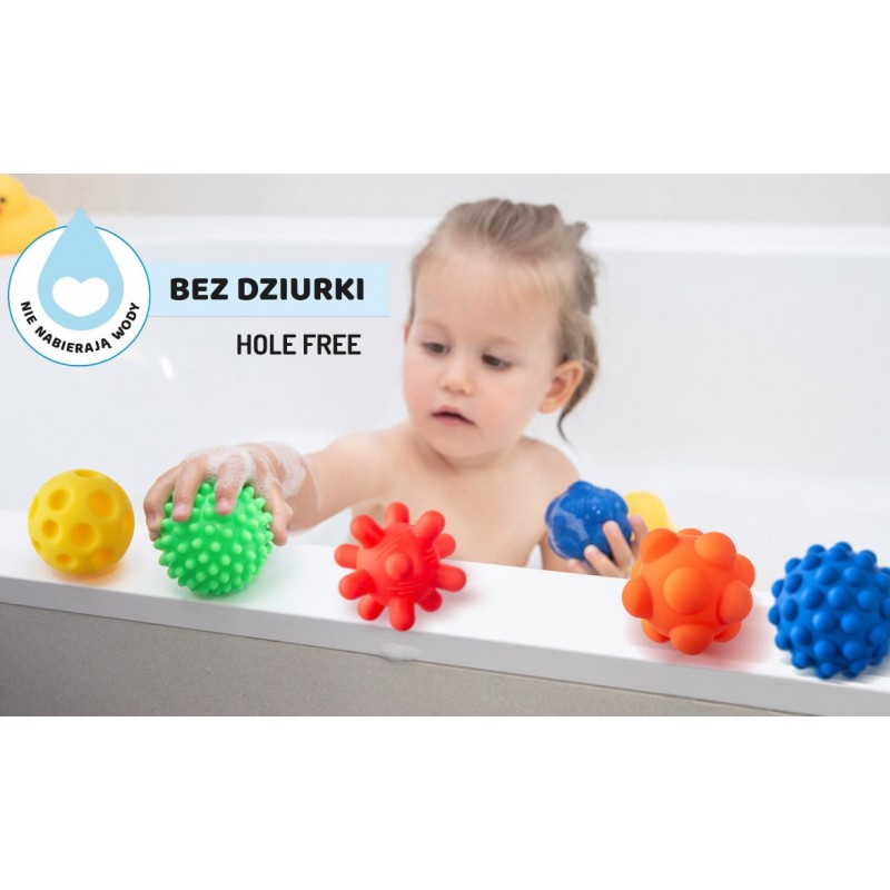 Piłeczki sensoryczne Tullo Sensorki nie posiadają dziurek, dzięki temu są łatwe w utrzymaniu czystości oraz świetnie sprawdzają się podczas kąpieli. Woda oraz ślina nie przedostają się do środka, a dzieci mają kontakt tylko z zewnętrzną warstwą zabawki. To jeszcze więcej higieny dla Twojego malucha!