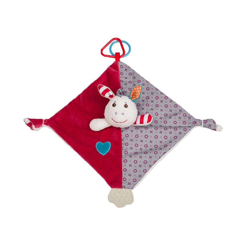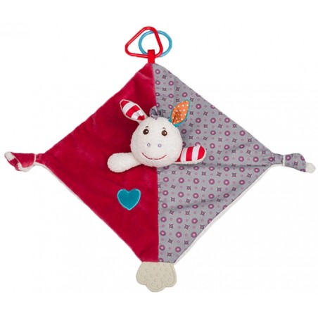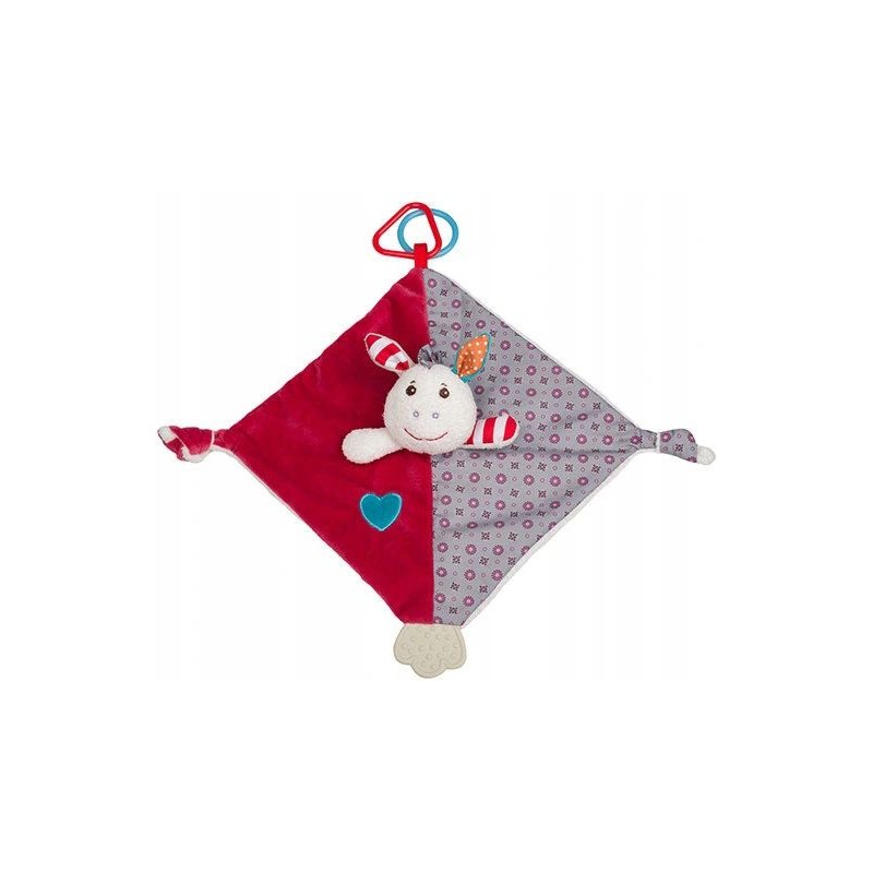 Osiołek Frankie to mięciutka w dotyku przytulanka, wykonana z najlepszej jakości materiałów. Będzie niezastąpionym przyjacielem maluszka podczas ząbkowania, dzięki umieszczonym elementom, które można chwytać i gryźć dając ulgę nabrzmiałym dziąsłom.