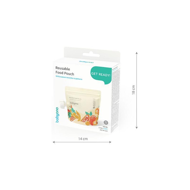 Babyono Wielorazowe saszetki na pokarm 150ml 5szt