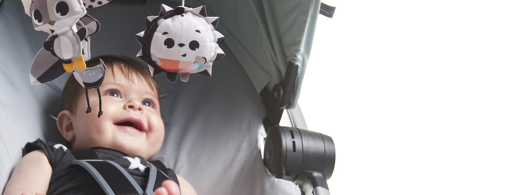 - Duży klips do mocowania w wózkach, fotelikach i łóżeczkach.
