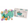 - 18 kolorowych klocków - każdy kolor ma po trzy klocki w trzech rozmiarach