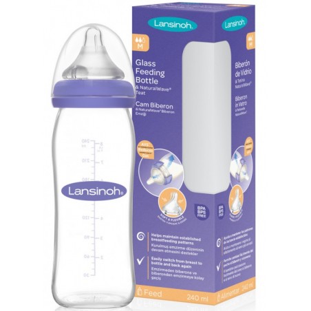 Szklana butelka do karmienia niemowląt LANSINOH jest łatwiejsza do mycia i sterylizacji. Wyposażona w miękki, elastyczny smoczek NaturalWave, zaprojektowany z myślą o utrwaleniu u dziecka dobrych wzorców nabytych podczas karmienia piersią.