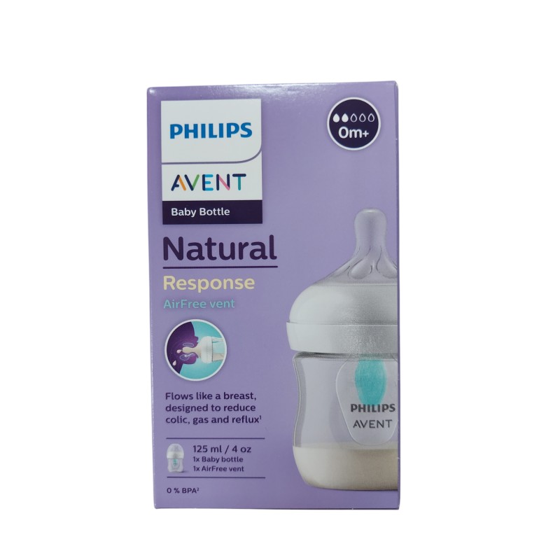 Szeroki, miękki i elastyczny smoczek w butelce Natural Response naśladuje kształtem i fakturą kobiecą pierś, co pozwala dziecku przyssać się i spokojnie pić. Smoczek wyposażony jest w zaworek antykolkowy, który utrzymuje powietrze z dala od brzuszka dziecka. Ogranicza to kolkę i dyskomfort. Nakładka antykolkowa AirFree zapobiega przedostawaniu się powietrza do małego brzuszka w trakcie karmienia w ułożeniu pionowym. Wypełniając smoczek mlekiem a nie powietrzem, ogranicza ilość połykanego powietrza i zapewnia dodatkową ochronę przed problemami związanymi z karmieniem.