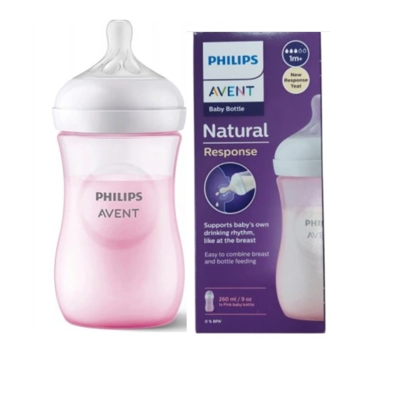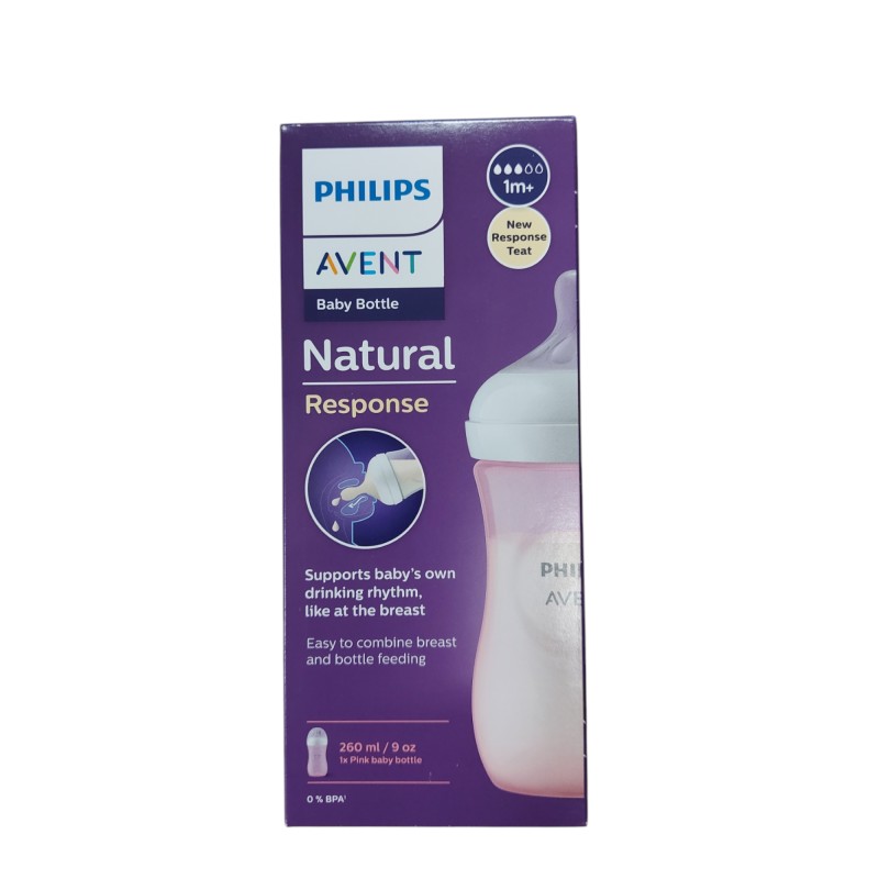 Butelka 260ml AVENT Natural Response PINK ze smoczkiem, który działa jak pierś Mamy. Poręczna, umożliwia chwytanie przez małe rączki dziecka, jak również łatwa w utrzymaniu w czystości. Smoczek szeroki, miękki, elastyczny, zaprojektowany tak, aby ułatwić łączenie karmienia piersią i butelką oraz wspierać naturalny rytm ssania małego dziecka. Wyposażony jest w zaworek antykolkowy, który reguluje w nim ilość powietrza. Tego typu rozwiązanie ogranicza kolkę oraz dyskomfort po jedzeniu.
