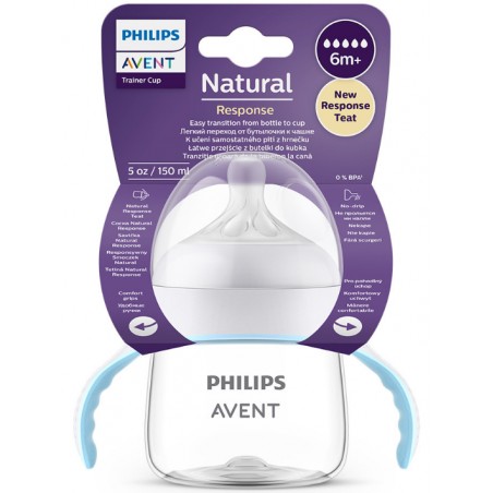 Kubek treningowy Natural Response ułatwia Twojemu maluchowi oswojenie się z kubkiem. Wygodny uchwyt pozwala dziecku trzymać butelkę samodzielnie i pić przy użyciu znanego mu smoczka.