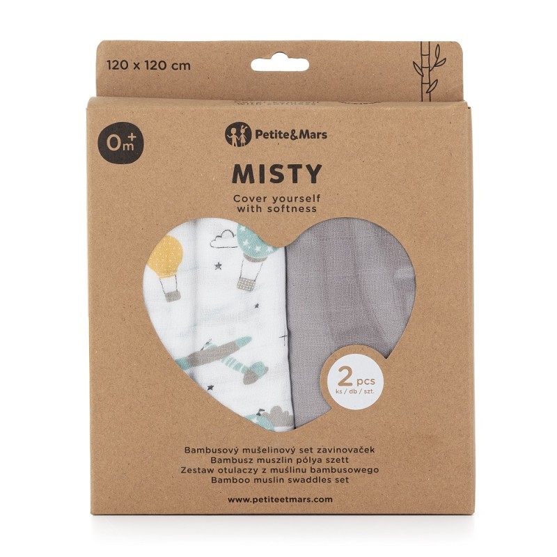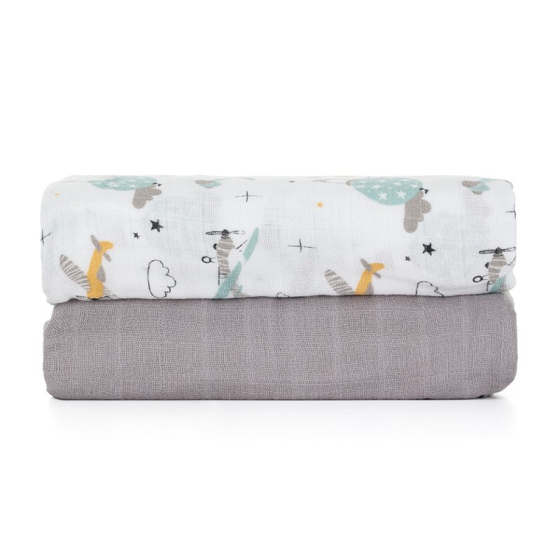 PETITE&MARS Otulacze z muślinu bambusowego 2szt GREY PLANES
