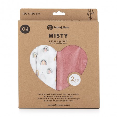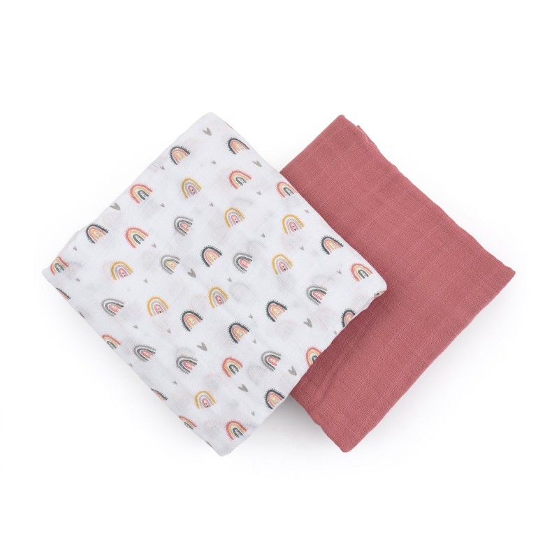 PETITE&MARS Otulacze z muślinu bambusowego 2szt ROSE RAINBOW