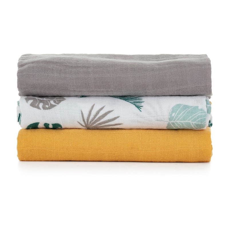 PETITE&MARS Pieluszki z muślinu bambusowego 3szt OCHRE LEAVES