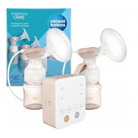 Canpol babies podwójny laktator elektryczny Express Care z aspiratorem do nosa. Doskonały dla mam Karmiących Piersią Inaczej – mlekiem odciągniętym z butelki, dla mam karmiących naprzemiennie, dla mam bliźniaków i aktywnych mam wracających do pracy, które nie chcą rezygnować z karmienia piersią.