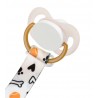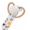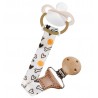 Tasiemka do smoczków uspokajających to ciekawy i stylowy dodatek do smoczka i ubranka dziecka, który spełnia przede wszystkim rolę ochronną, ponieważ zabezpiecza smoczek przed zgubieniem oraz upadkiem na ziemię i zabrudzeniem. Sprawdzi się zarówno w domu, jak podczas spacerów czy w podróży. Jest specjalnie przystosowana pod kątem bezpieczeństwa dziecka. Zawieszka wykonana została z trwałej tasiemki. Posiada odpowiednie zapięcie wykonane w postaci drewnianego klipsa. Łatwe i szybkie mocowanie. Stanowi także unikalną ozdobę ubranka dziecka. Smoczek zawsze pozostaje w zasięgu ręki. Pasuje do każdego smoczka z uchwytem i bez uchwytu. Dobrze się trzyma ubranka i nie powoduje uszkodzenia materiału.