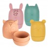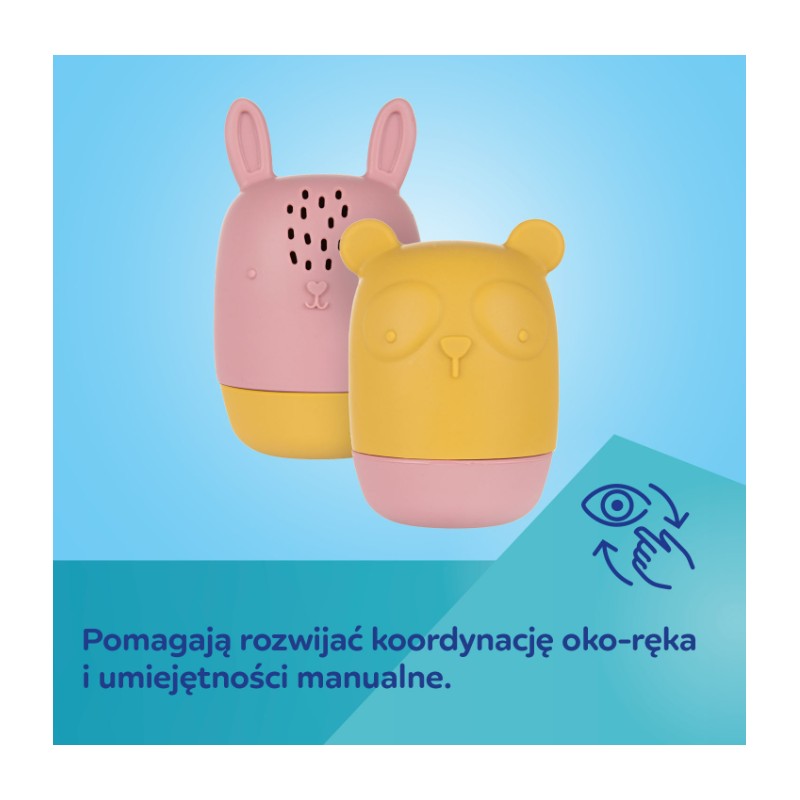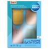 Zestaw zabawek do kąpieli wzbudza zainteresowanie u dziecka i uczy kreatywnego myślenia, dzięki wielu możliwościom zabawy. Napełnione wodą po naciśnięciu pryskają wodą – ćwiczą celność i sprawiają dużo radości.