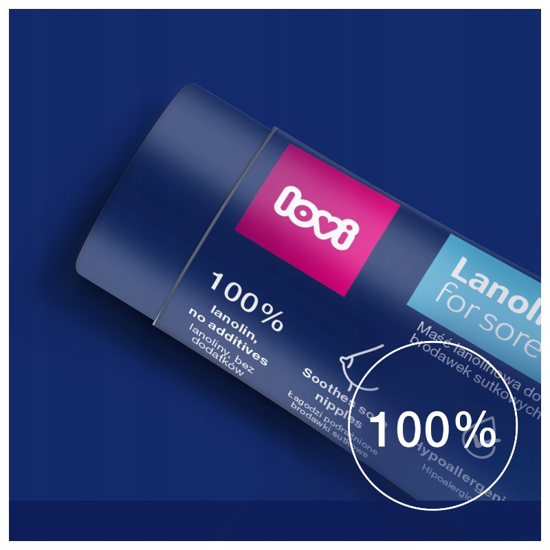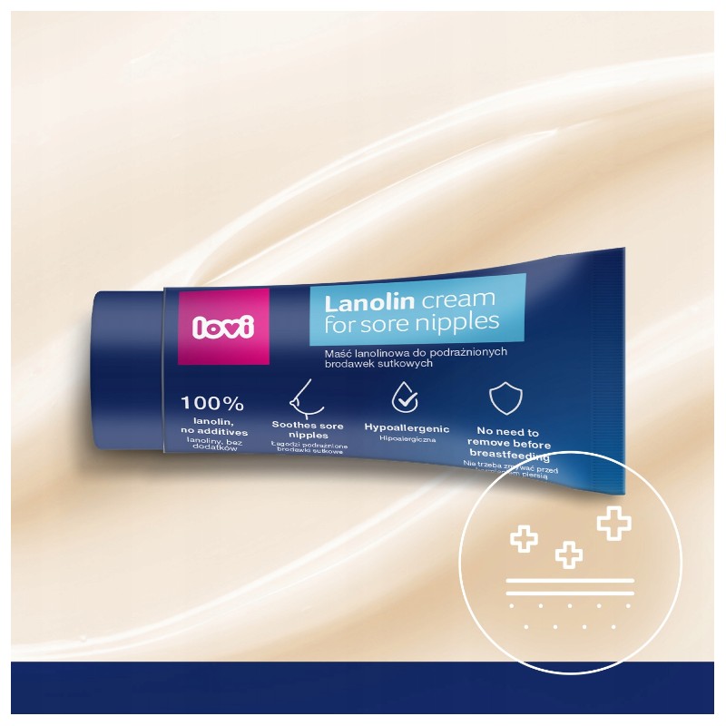 Maść do używania w okresie ciąży i karmienia piersią. Chroni przed otarciami, pękaniem oraz łagodzi podrażnione brodawki sutkowe. Jest to 100% lanolina jakości farmaceutycznej, bez dodatków, dzięki czemu jest hipoalergiczna. Jest bezpieczna dla mamy i dziecka, a także wygodna w stosowaniu, nie trzeba jej zmywać przed kolejnym karmieniem.