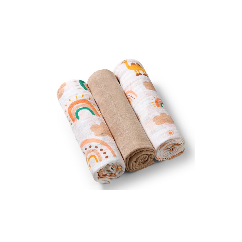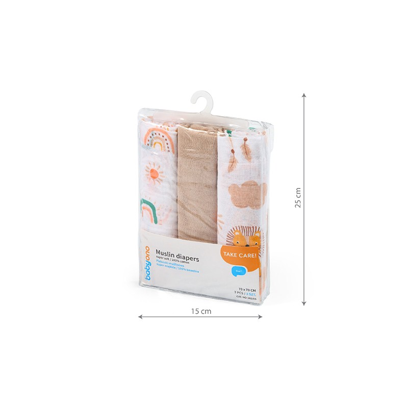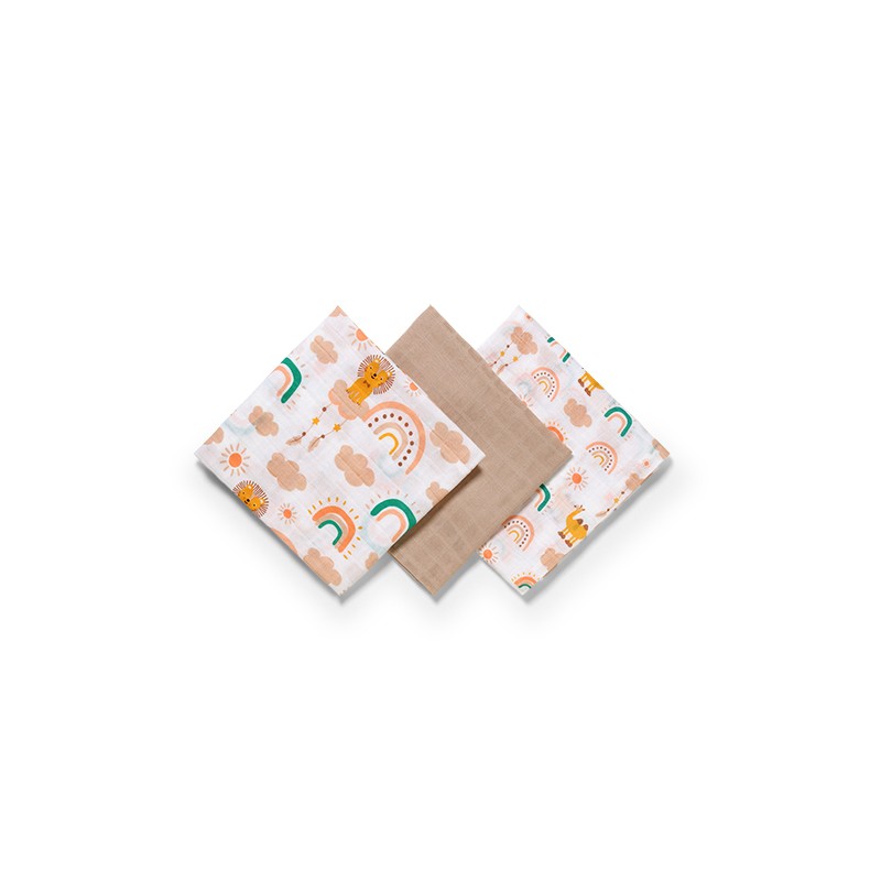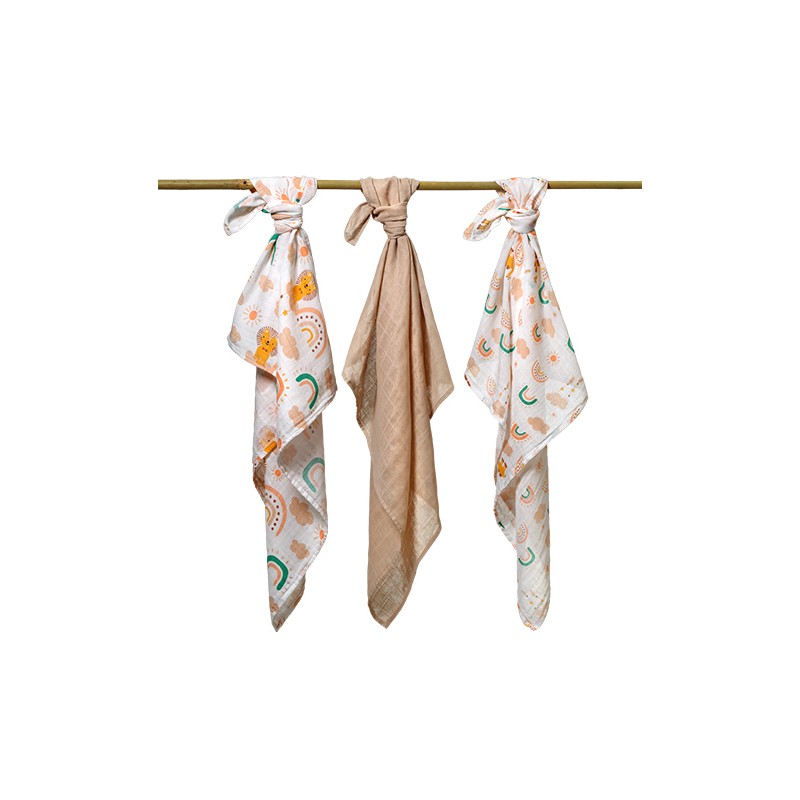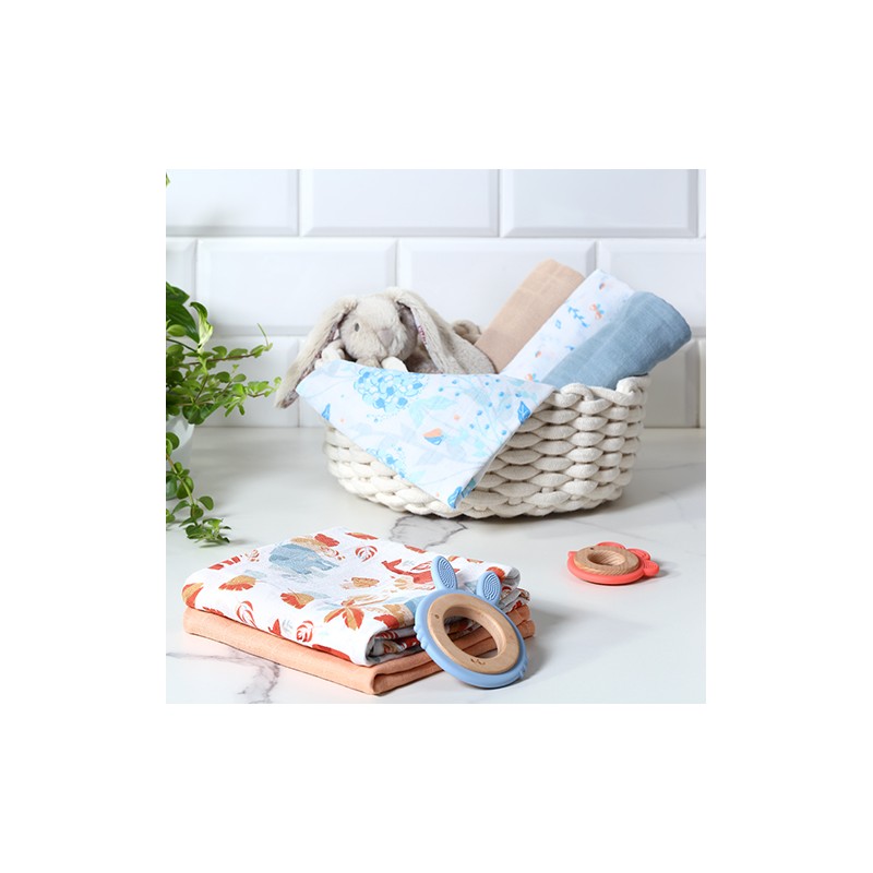 Pieluszki muślinowe, wykonane z dwuwarstwowej tetry zawierającej 100% bawełny są niezbędne przy przewijaniu, w czasie kąpieli czy spacerze.