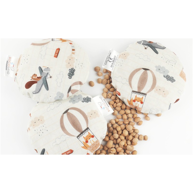 Materiały użyte do produkcji termoforów marki BOCIOLAND są najwyższej jakości. Zawsze są 100% bawełną i podlegają ścisłej selekcji. Pestki wiśni natomiast są idealnie wyczyszczone, nieuszkodzone i pochodzą z polskich upraw. Wzory, wielkość i ciężar termoforów zostały dobrane tak, by były odpowiednie dla swojej grupy wiekowej oraz żeby działały tylko na wybrane partie mięśni.