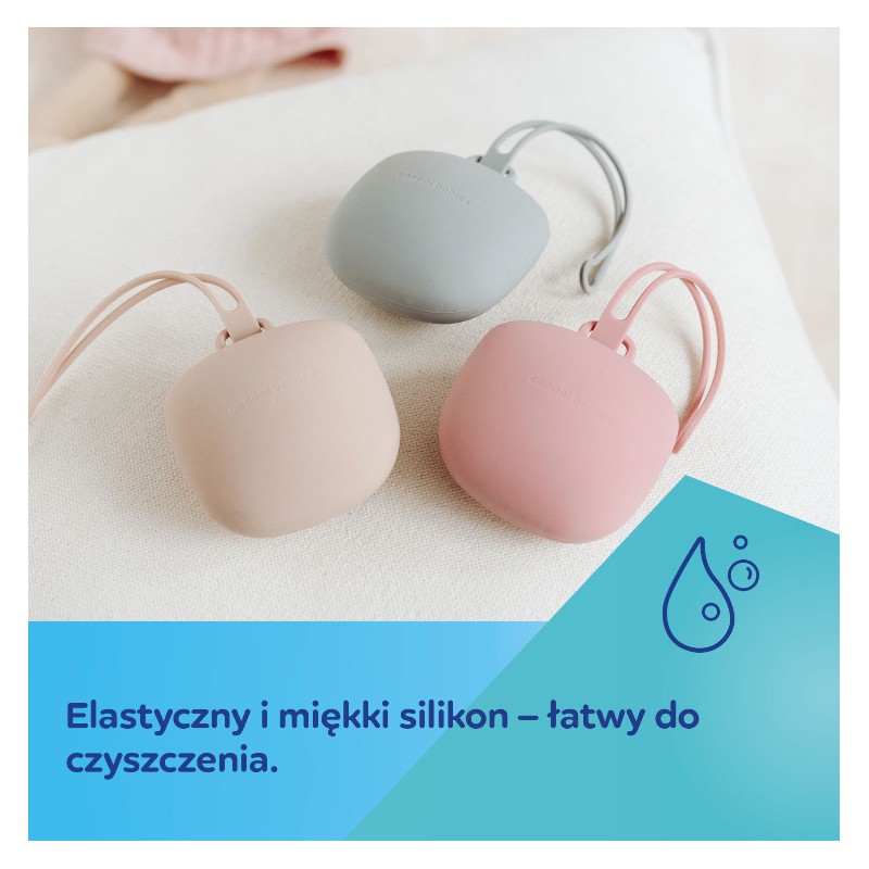 Silikonowe etui na smoczki zabezpieczy ulubiony smoczek Twojego Maluszka podczas spacerów, podróży oraz w domu. Piękne i praktyczne etui do przechowywania smoczków pomieści dwa standardowej wielkości smoczki, które będą zawsze czyste i gotowe do użycia. Etui ma kompaktowy kształt i wygodny praktyczny uchwyt, przy pomocy którego z łatwością można je przypiąć do wózka, łóżeczka czy torby, tak by smoczki były zawsze pod ręką. Etui na smoczki Canpol babies zostało wykonane z elastycznego i miękkiego silikonu dzięki czemu jest wygodne w użytkowaniu i łatwe do czyszczenia. Minimalistyczny wygląd pasuje do każdej torby dla mamy.