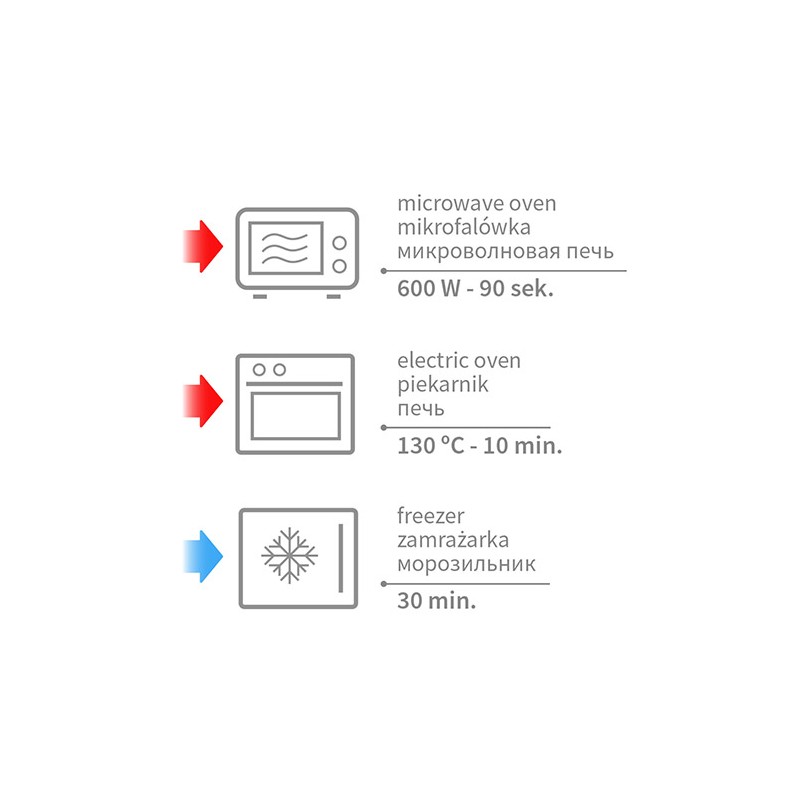 -Umieść termofor w zamrażalniku (na około 30 minut). Pamiętaj, aby zabezpieczyć termofor przed kontaktem z żywnością