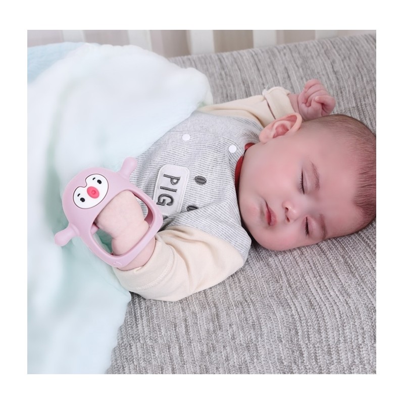 Wyjątkowy kształt sprawia, że gryzak idealnie pasuje do małych dłoni dziecka pozwalając mu ćwiczyć odruch chwytania kształtując w ten sposób umiejętności motoryczne.