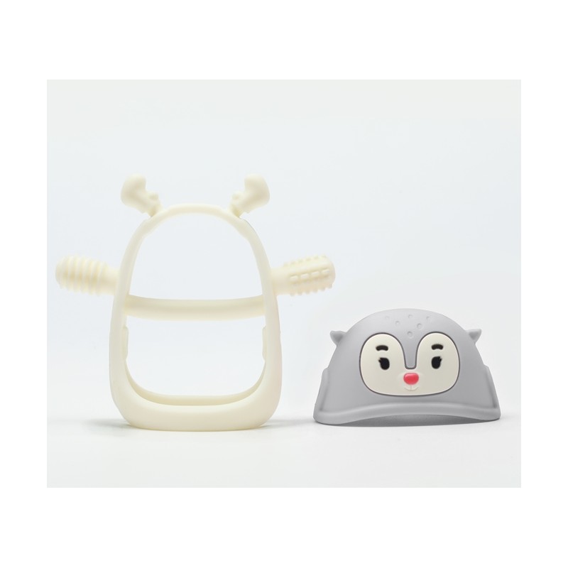 Wykonany z przyjemnego, miękkiego i bezpiecznego silikonu spożywczego gryzak dla niemowlaka Renifer został zaprojektowany na kształt piersi i sutka mamy. Na jego wypustkach znajdują się różne tekstury stymulujące dziąsła dziecka i łagodzące ból związany z ząbkowaniem. Dodatkowo gryzak dla niemowlaka Smily Mia można chłodzić w zamrażarce, by wzmocnić jego kojące właściwości. To kolejny krok po gryzaku Pingwinie, którego wypustki były gładkie. Kiedy ból związany z ząbkowaniem nasila się, uspokajającego Pingwinka zamieniamy na masującego dziąsła Renifera.