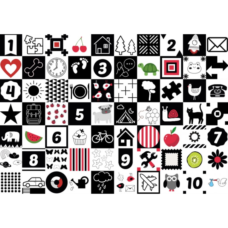 Strona z czarno białymi kontrastowymi wzorami jest specjalnie zaprojektowana dla najmłodszych- noworodków i niemowląt. Takie właśnie kolory są dla nich najbardziej interesujące.